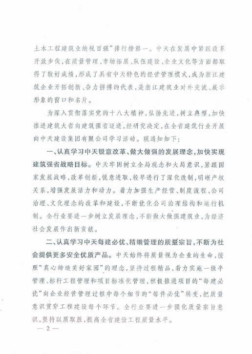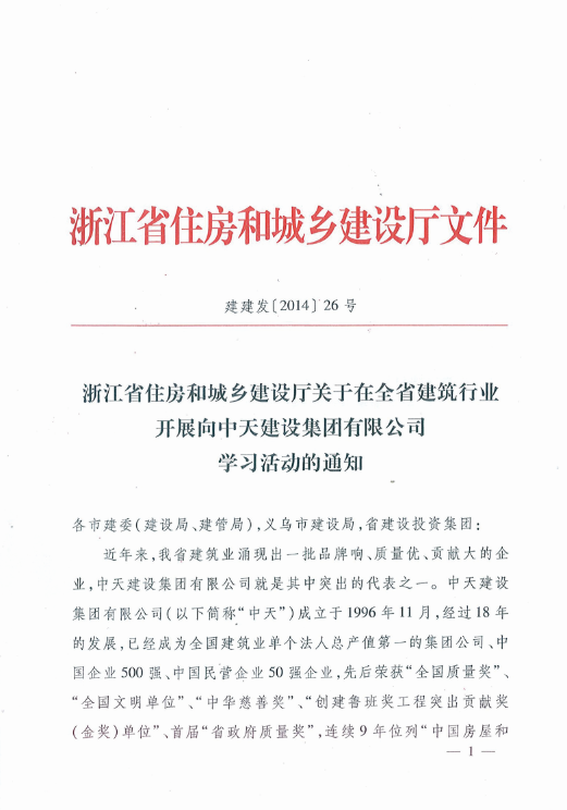 《浙江省住房和城乡建设厅关于在全省建筑行业开展向DB电竞建设集团有限公司学习活动的通知》